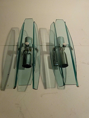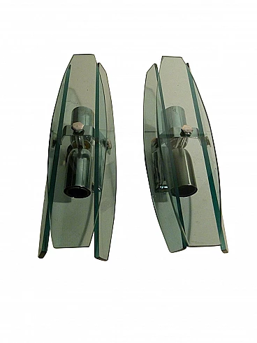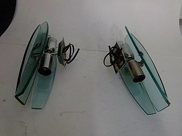 Coppia di applique in vetro e metallo di Veca, anni '60