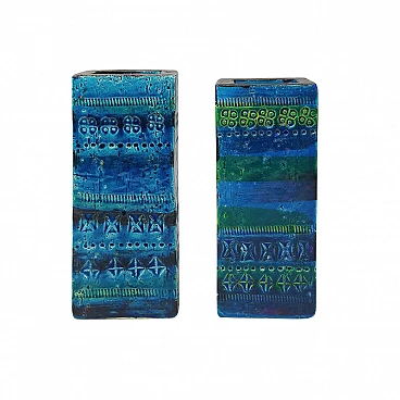 1960 Stupenda coppia di vasi originali in ceramica Bitossi di Aldo Londi, questi vasi fanno parte della collezione "Blue Rimini", sono firmati e in ottime condizioni. Fatto a mano, Made in Italy.