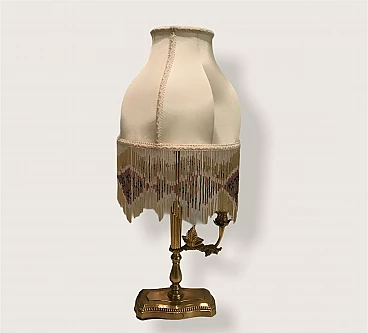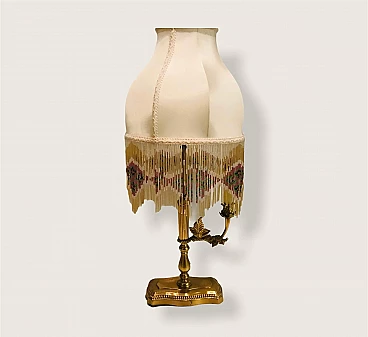 Lampada da tavolo in ottone con paralume in perline di seta, anni '60