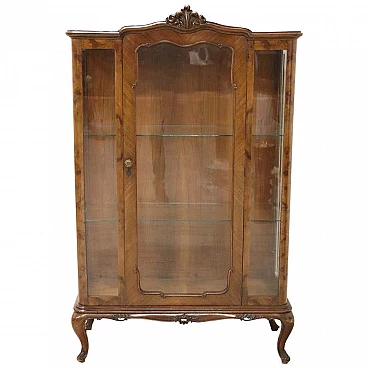 Elegante raffinata vetrina cristalliera antica in pregiato legno di noce con decorazioni in radica. Databile verso la prima metà del secolo XX. Caratterizzata da linea mossa con vetro presente anche ai lati per dare una visione più completa dei vostri preziosi oggetti da collezione esposti. Perfette condizioni vi consigliamo comunque di guardare bene in dettaglio tutte le foto allegate. Proposta ad un'ottimo prezzo trattabile vi invitiamo ad inviarci le vostre proposte di acquisto le valuteremo con piacere.