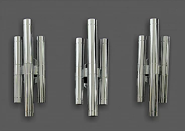 3 Appliques in metallo cromato di Lamperti, anni '70