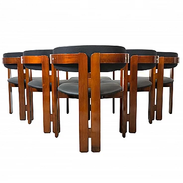 Set di 6 sedie Pigreco di Tobia Scarpa & Emilio Mantese. La sedia a pozzetto Pigreco è stata progettata nel 1959,realizzata in noce lamellare con braccioli e schienale curvato. La seduta e lo schienale sono in Eco pelle Martellata di colore nero Progettata nell’anno 1959/1960 all’Istituto Universitario di Architettura di Venezia, per il corso di arredamento da Tobia Scarpa e Emilio Montese. Effettuato restauro completo,la parte lignea è stata tinta e laccata, seduta e schienale con interni e rivestimento nuovo. CONDIZIONI PERFETTE Misure: Altezza cm 67-Profondità cm 50-Larghezza cm 57-Seduta cm 48x48-Altezza seduta cm 40