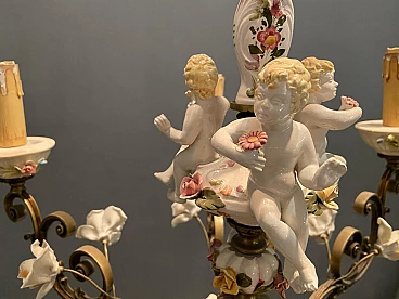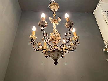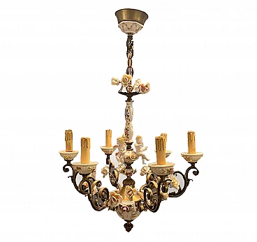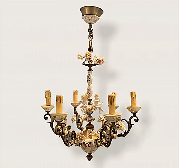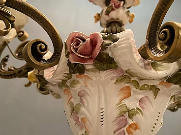 Lampadario in bronzo e ceramica di Antonio Zen per Le Ceramiche di Nove e Bassano, anni '50