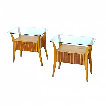 Coppia di comodini di Gio Ponti per La Permanente Mobili Cantù, anni '50. L'oggetto vintage presenta parti mancanti e/o difetti e può necessitare di riparazioni.
