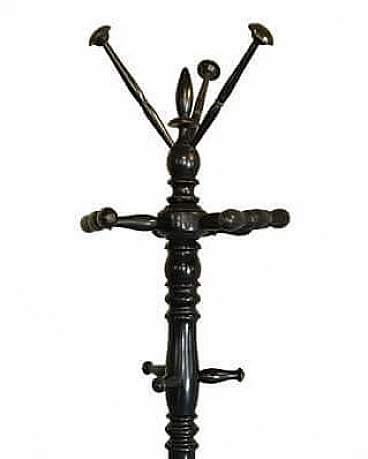 Appendiabiti a colonna in noce tornito ed ebanizzato, metà '800