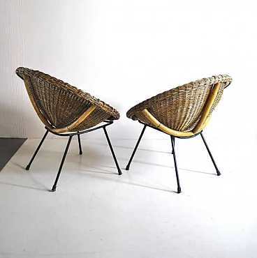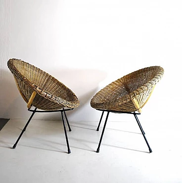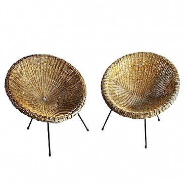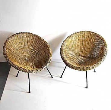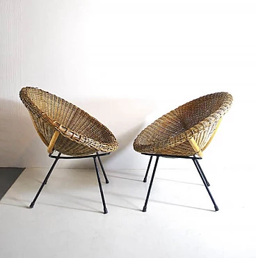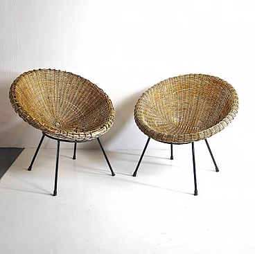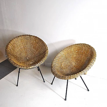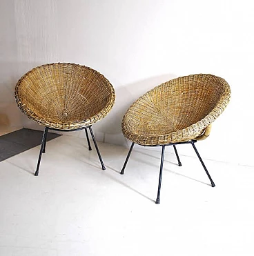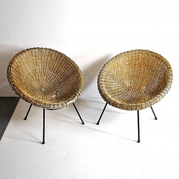 Coppia di sedie a uovo in vimini, anni '50