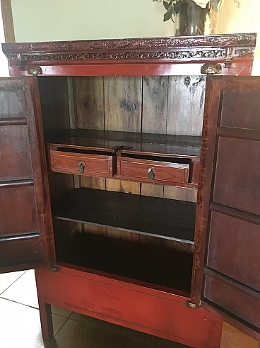 Armadio cassaforte cinese in legno laccato rosso, '800