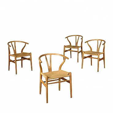 4 Sedie CH24 Wishbone di Hans Wegner per Carl Hansen & Søn, anni '70