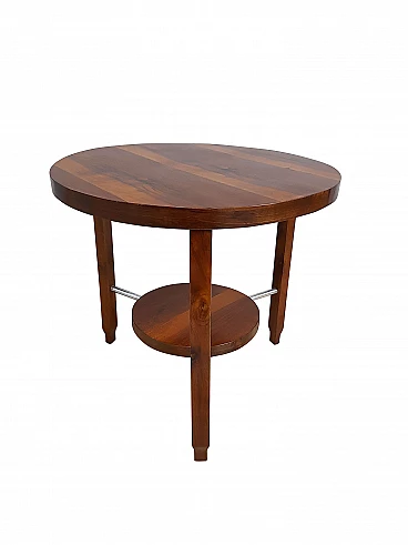 Tavolino tondo Art Decò in noce fiammata, anni '30