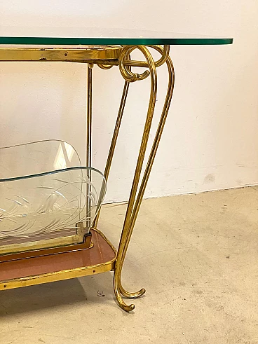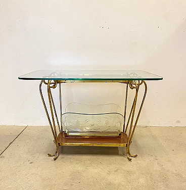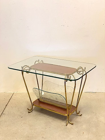 Tavolino portariviste in vetro e ottone, anni '50