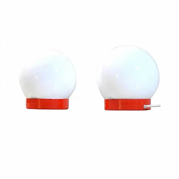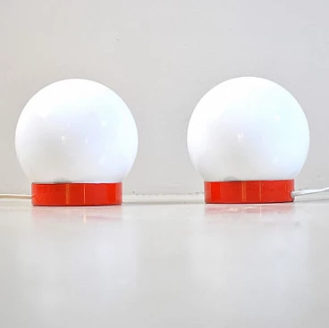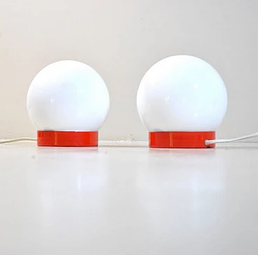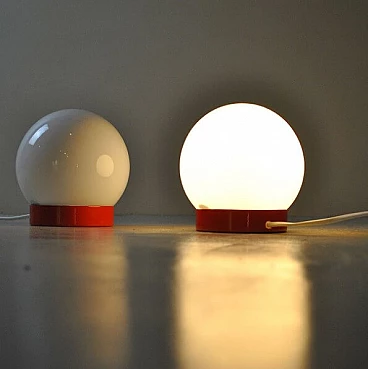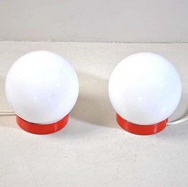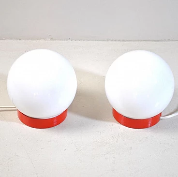Coppia di lampade da comodino in metallo e vetro opalino, anni '60