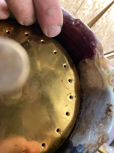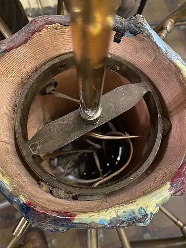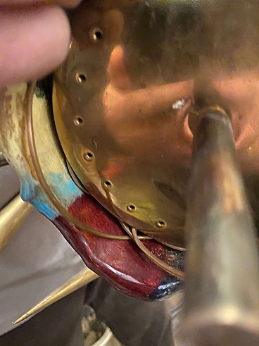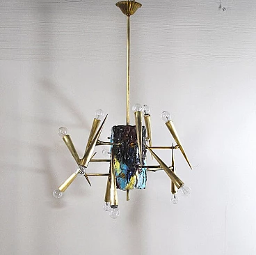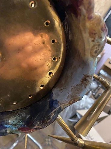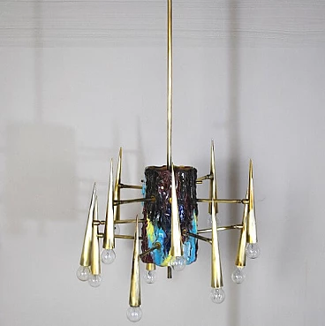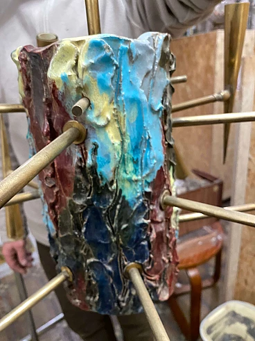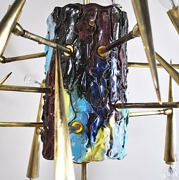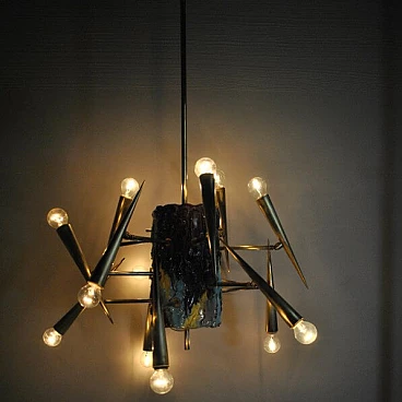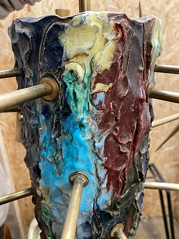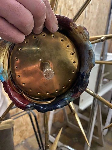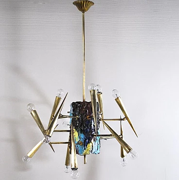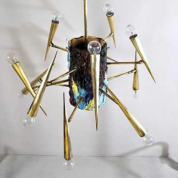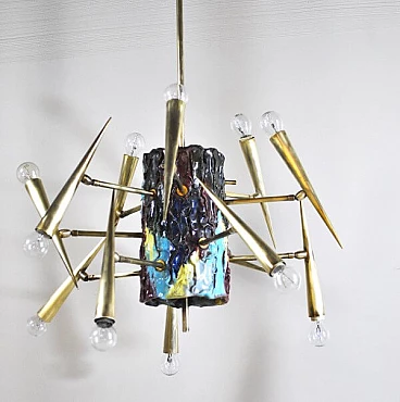 Lampadario in ceramica e ottone con luci regolabili di Leonardi Leoncillo per Lumi, anni '50