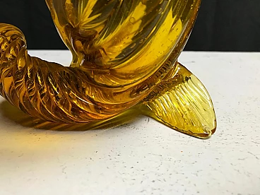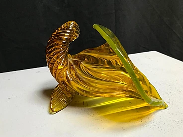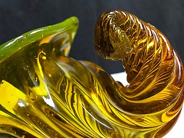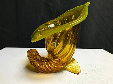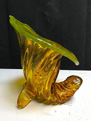 Scultura a cornucopia in vetro di Murano giallo cangiante