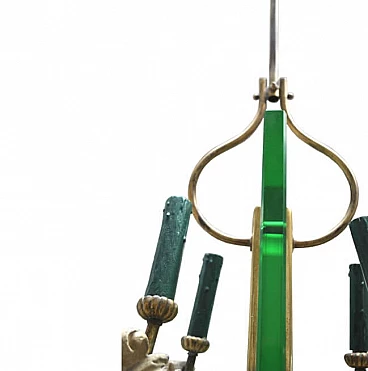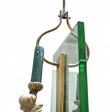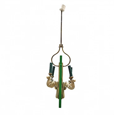 Lampadario in cristallo, ceramica e ottone in stile Pietro Chiesa, anni '40