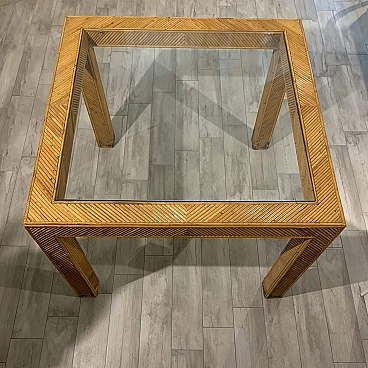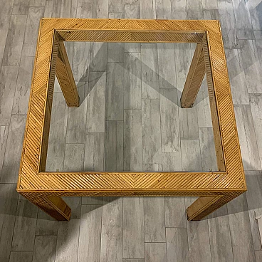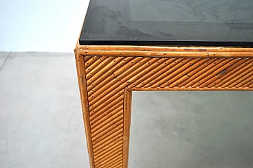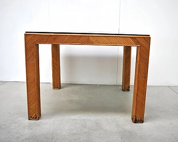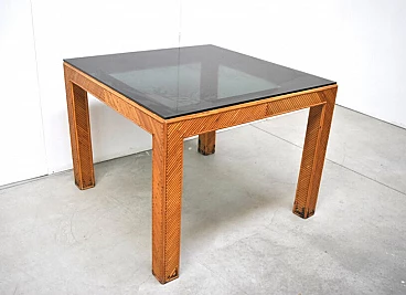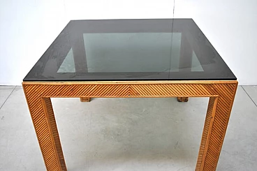 Tavolo in vimini e vetro fumè, anni '70