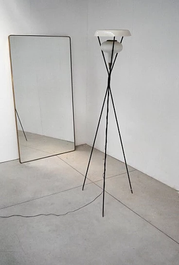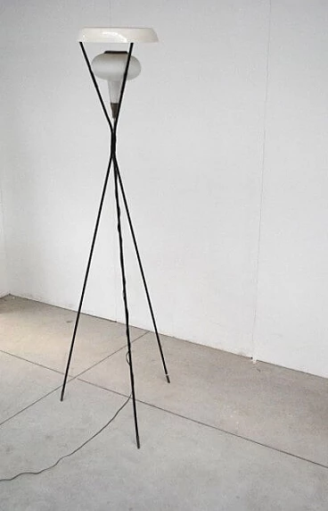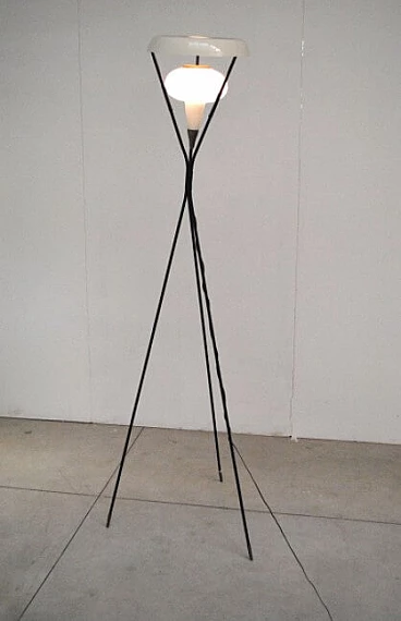 Lampada da terra in ferro e vetro opalino nello stile di Stilux, anni '50