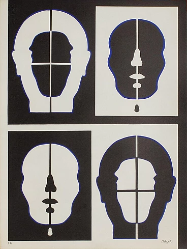 Litografia Visage Négatif di Roy AdzaK, 1972