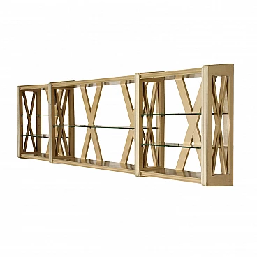 Libreria pensile in legno laccato e ripiani in vetro. Prodotto in buone condizioni, presenta piccoli segni di usura.