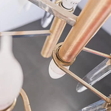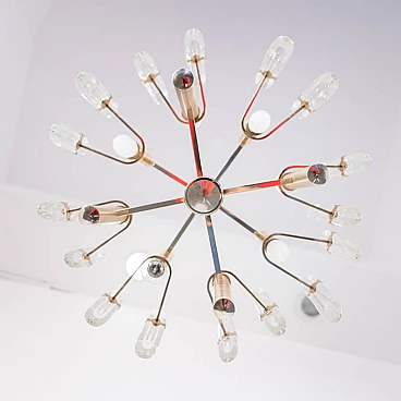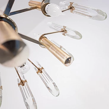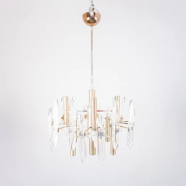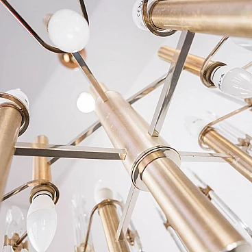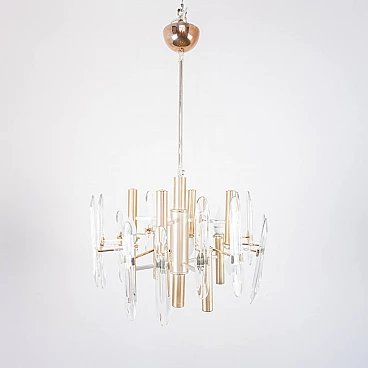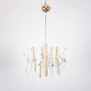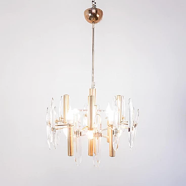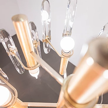 Lampadario a 6 luci in metallo dorato di Gaetano Sciolari, anni '70