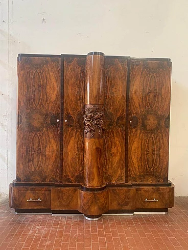Armadio Art Déco in noce e acciaio di Ducrot, anni '20
