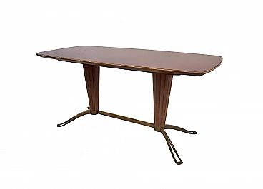 Tavolo da pranzo in legno, vetro e ottone di Vittorio Dassi, anni '50.
