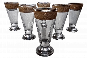 6 Bicchieri in cristallo con decoro Regina dei F.lli Fumo, anni '60