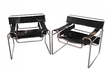 Coppia di poltrone Wassily in pelle di cavallino, anni '70