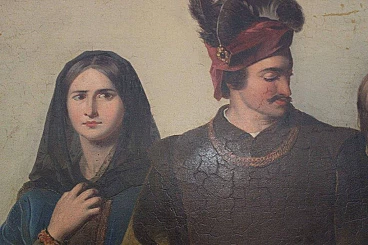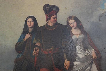 Cassioli Amos, dipinto in stile romantico ad olio su tela, La Rivale, '800