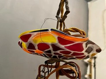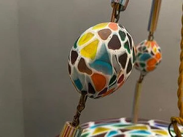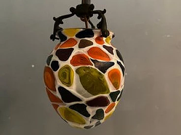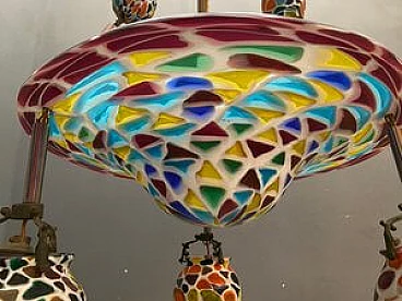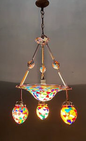 Raro lampadario antico in vetro a mosaico del 1920 o degli anni 30. Proveniente da una villa vicino alla Costa Amalfitana Italia. E' fatto di "pasta di vetro" una miscela speciale di vetro e pezzi di mosaico di vetro che crea una bella diffusione di luce quando illuminato. Interamente realizzata a mano con raccordi in bronzo Piccola scheggiatura sul baldacchino superiore .