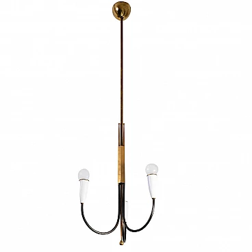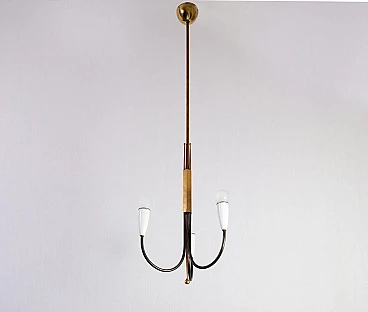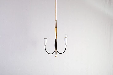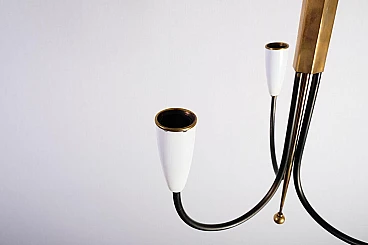 Lampadario in ottone pieno e bachelite bianca, anni '50