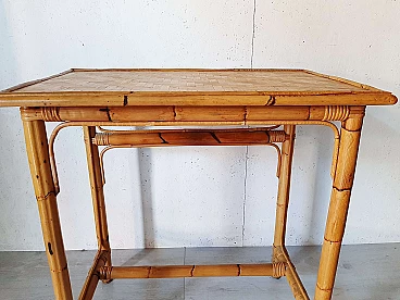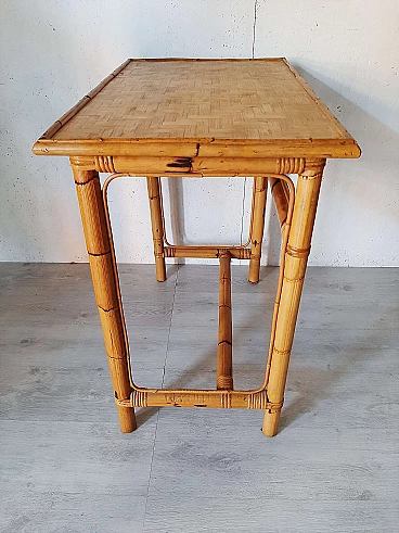 Tavolo da scrivania in bambù originale anni '70, ha una vista molto ben rifinita. In vendita c'è anche la sua sedia (la seduta è da fissare) Dimensioni cm 80-50-81 h Tutti i miei oggetti sono vintage o antichi o comunque usati quindi e' normale che presentino leggeri segni di usura e piccole imperfezioni.