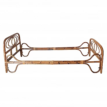 Letto singolo in bamboo con viti in ottone, anni '70.