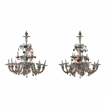Coppia di lampadari in vetro di Murano soffiato, anni '40