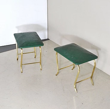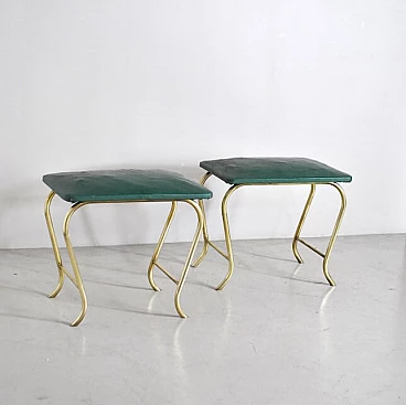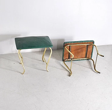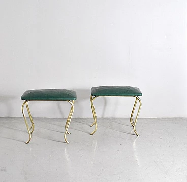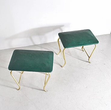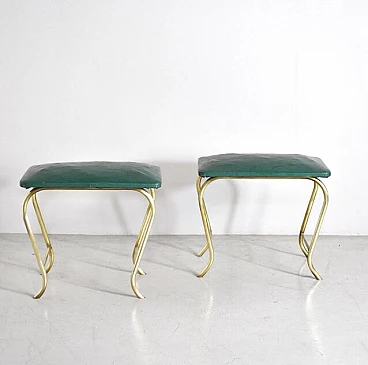 Coppia di ottomane con struttura in ottone tubolare e sedute in vinile verde, anni '60