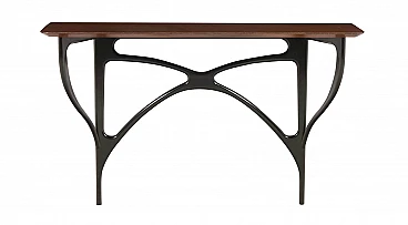 Consolle in legno ebanizzato e piano in mogano di Ico Parisi per Spartaco Brugnoli, 1949. Bibliografia: Giuliana Gramigna, Repertorio del Design Italiano 1950-2000 per l'arredamento domestico, volume 1, édition Allemandi & C., Turin, 2003, p.21