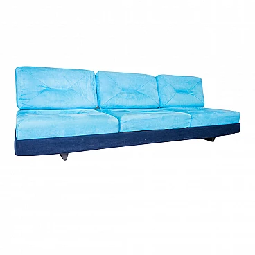 Divano a 3 posti di Saporiti Italia. Rivestito in alcantara celeste, schienale rimovibile. Piedi in plastica. Buone condizioni, con segni del tempo e utilizzo.