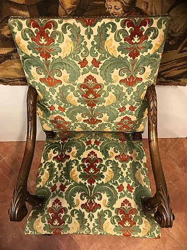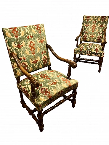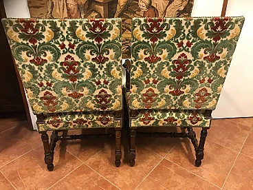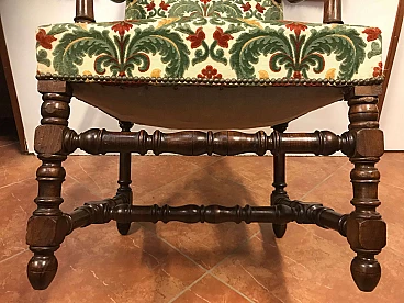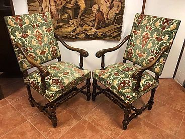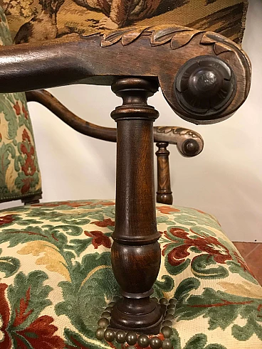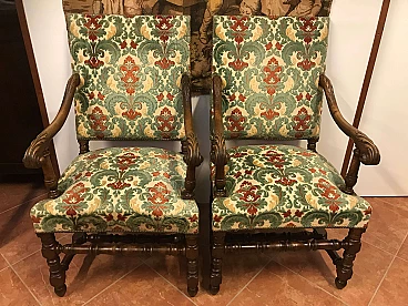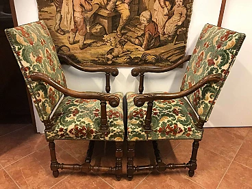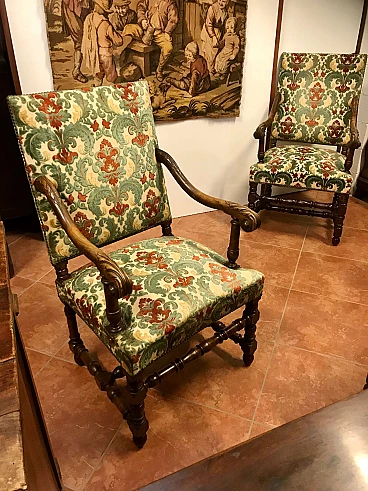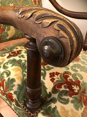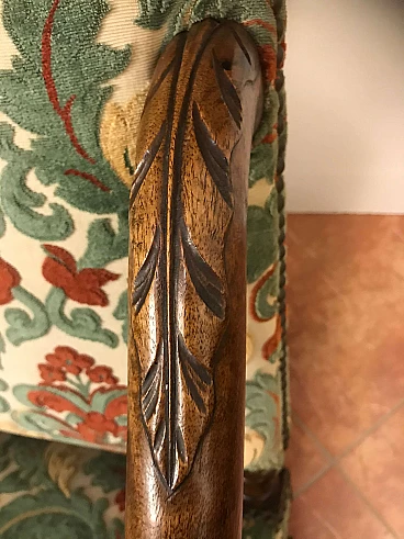 Coppia di Poltrone a Rocchetto in noce rivestite in tessuto, Torino, originali primi '800