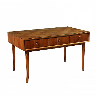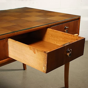Scrivania in faggio massello, ciliegio e vetro, anni '50