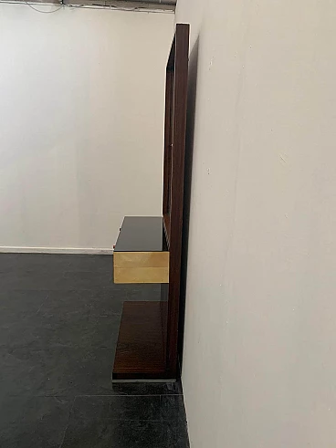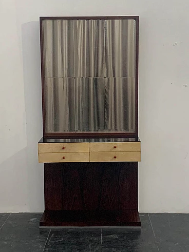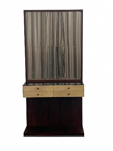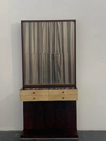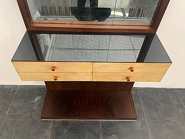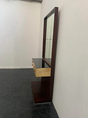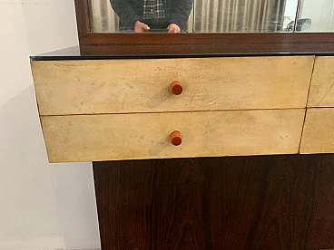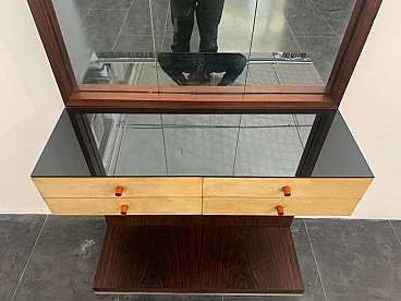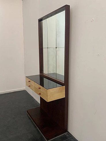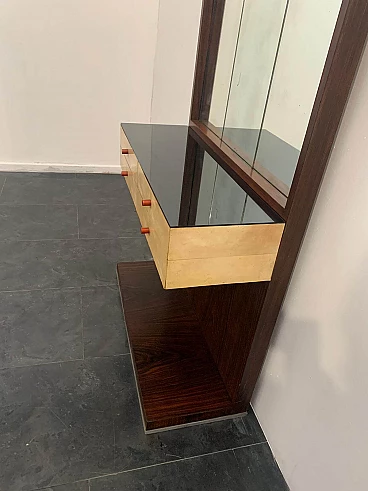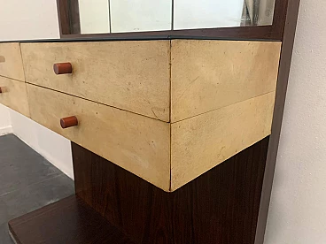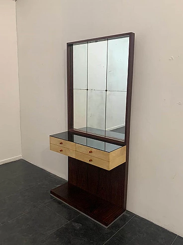 Mobile da ingresso con cassetti e specchio in palissandro e pergamena con piano in vetro di Guglielmo Ulrich, anni '50