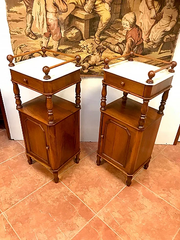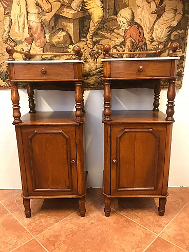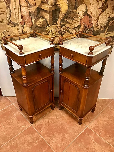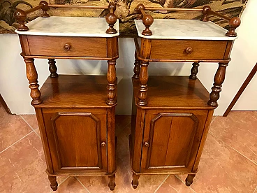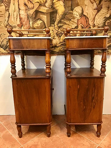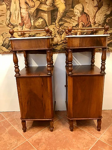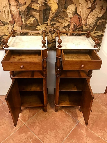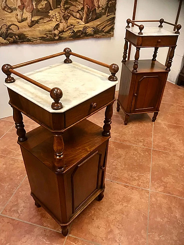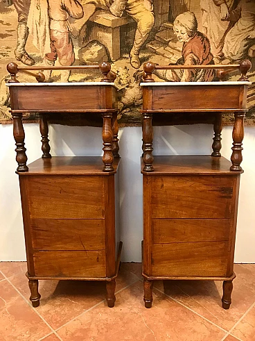 Coppia di Comodini Piemontesi in noce con alzatine con piano in marmo bianco, epoca Luigi Filippo, originali metà '800
