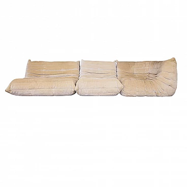 Divano modulare modello Togo. Disegnato da Michel Ducaroy e prodotto da Ligne Roset. Rivestimento in cotone color beige. Presenta segni del tempo, piccoli strappi e macchie, come da foto. Anni '70.