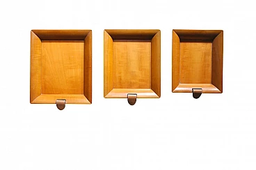 3 Svuotatasche in pelle e legno di Hermes Paris, anni '80. Il set è composto da tre vassoio di diverse misure, quella indicata è la misura più grande. Le altre due sono 23x19 e 21x17. L'altezza è uguale per tutti.