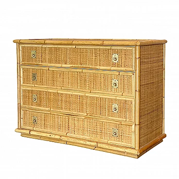 Cassettiera Dal Vera anni '70 in bamboo e vimini con maniglie in ottone.