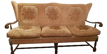 Divano e coppia di poltrone in tessuto di San Leucio, anni '50