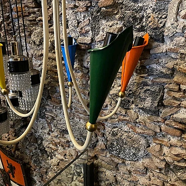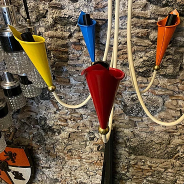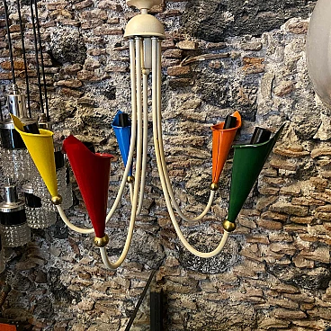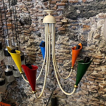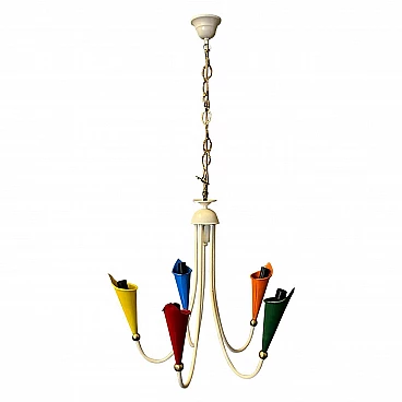 Lampadario in ottone e metallo dipinto, anni '50