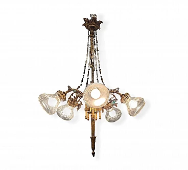 Lampadario Art Deco in vetro di Murano di Ercole Barovier, anni '40