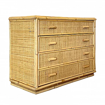 Cassettiera in vimini e bambù con 4 cassetti, anni '70.