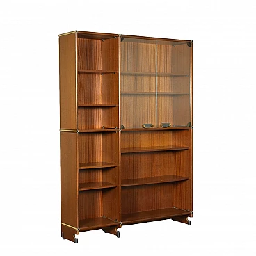 Libreria in mogano, alluminio ottonato e vetro, anni '60