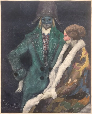 Romeo Costetti (Reggio Emilia 1871 – Roma 1957) è stato un pittore e incisore specializzatosi nella tecnica del monotipo. Dopo una prima formazione presso l’Istituto d’arte di Bologna, nel 1886 va a Napoli per seguire i corsi di disegno di Domenico Morelli. Si trasferisce poi a Parigi nel 1899 dove entra in contatto con gli esponenti delle avanguardie artistiche; dalla Francia viaggerà in altri paesi avvicinandosi alle tematiche simboliste. Nei primi decenni del Novecento si lega all’ambiente della Secessione romana, prediligendo spesso la tecnica del monotipo. Egli attraverso questa tecnica cercherà di tradurre la mera realtà ma anche indagare aspetti più misteriosi. Si interesserà alle maschere carnevalesche a partire dagli anni Dieci fino ad arrivare nel ’30 ad esporre a Milano la serie Maschere Veneziane. Ha esposto alla Mostra di acqueforti di Parigi nel 1930.