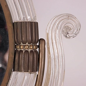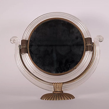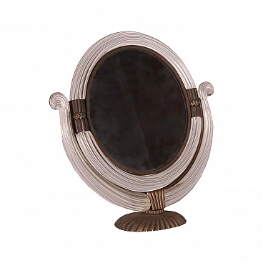 Specchio da tavolo in bronzo e vetro di Murano alla maniera di Barovier, anni '30